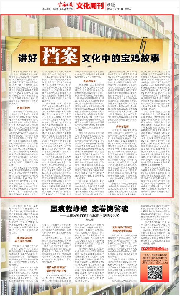 在浩瀚的歷史長河中,檔案文化宛如一顆璀璨的明珠,承載著城市的記憶,記錄著時代的變遷,蘊(yùn)含著深厚的文化底蘊(yùn)。寶雞,這座古老而又充滿活力的城市,擁有豐富的檔案資源,這些檔案不僅是寶雞歷史的見證,更是講好寶雞故事的重要資源和底氣。在建設(shè)文化強(qiáng)省、文化強(qiáng)市的新時期,深入解密檔案文化,對于傳承寶雞歷史文化、提升城市形象、增強(qiáng)文化自信具有重要意義。