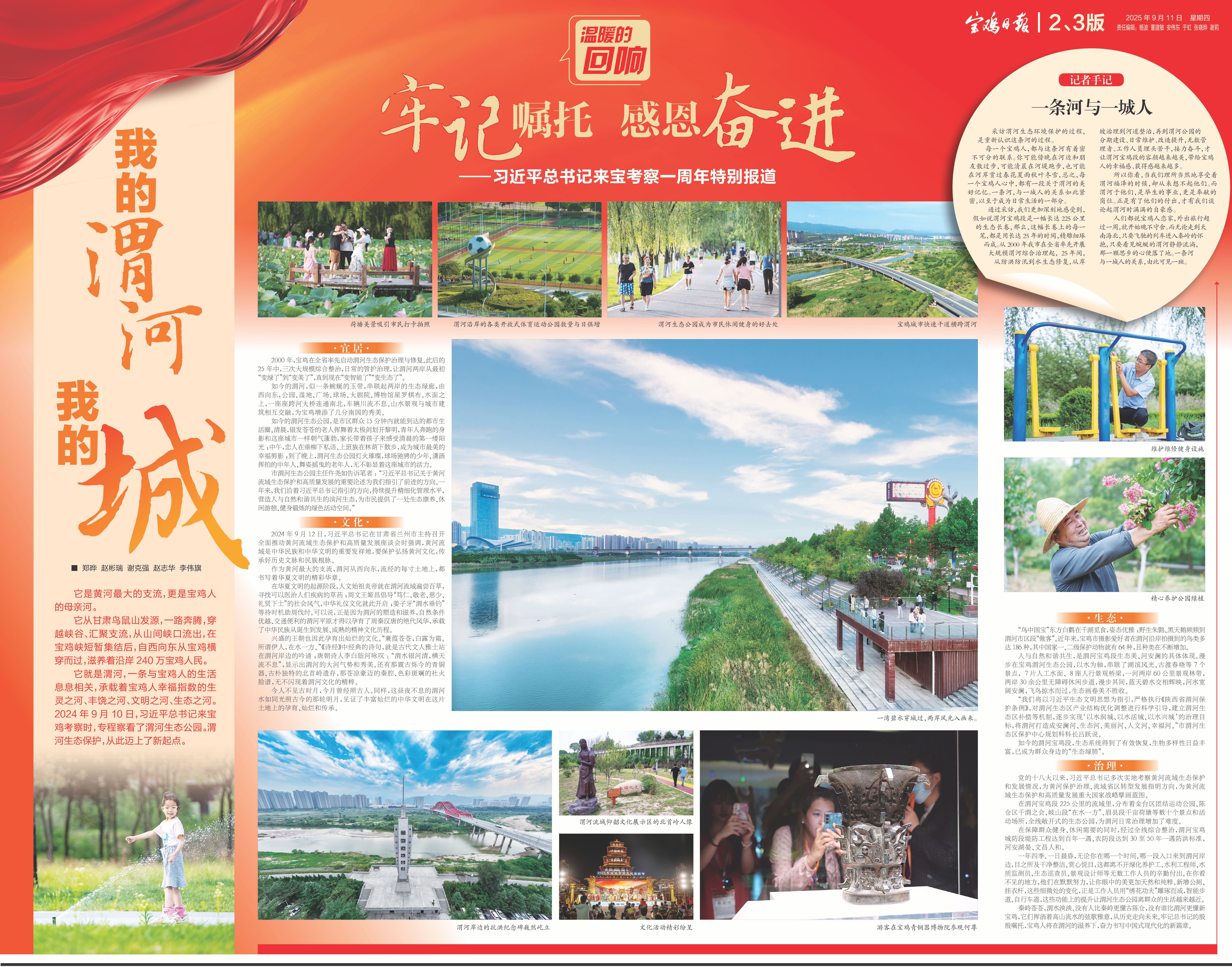它就是渭河,一條與寶雞人的生活息息相關,承載著寶雞人幸福指數的生靈之河、豐饒之河、文明之河、生態之河。2024年9月10日,習近平總書記來寶雞考察時,專程察看了渭河生態公園。渭河生態保護,從此邁上了新起點。