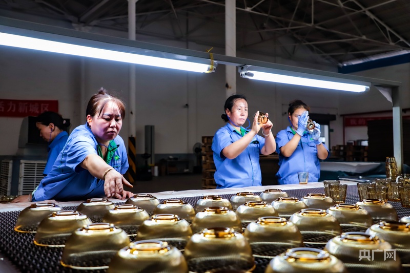 寶雞市育才玻璃制瓶有限公司(簡稱育才玻璃)生產線上,智能化生產設備和檢驗設備正在運行。高腳杯、啤酒杯、水杯等玻璃器皿被工人歸類后陳列。“隨著自動化設備替代舊式機械,生產效率顯著提升。”下屬企業輝騰駿達玻璃制造有限公司副總經理趙海軍說。