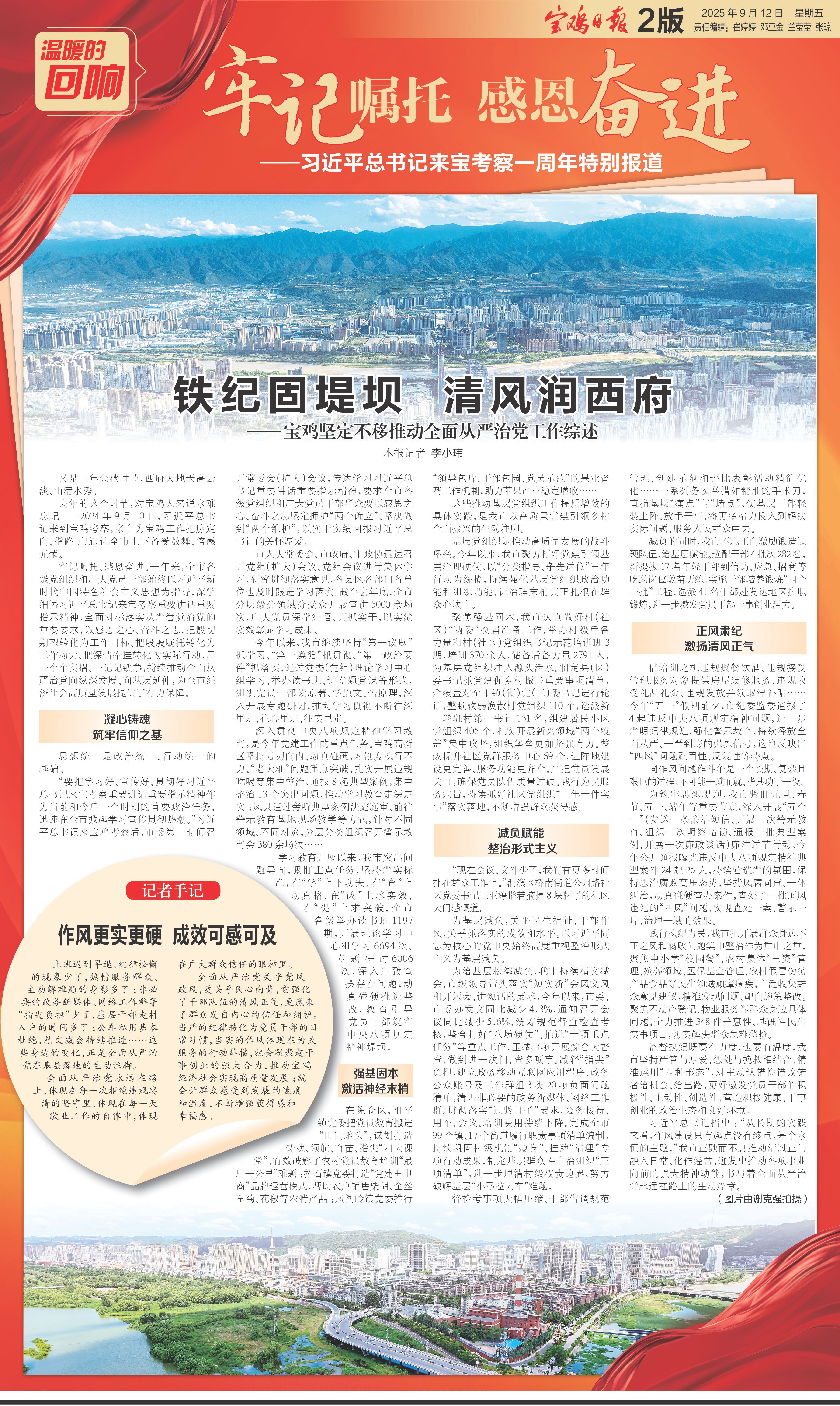 去年的這個時(shí)節(jié),對寶雞人來說永難忘記——2024年9月10日,習(xí)近平總書記來到寶雞考察,親自為寶雞工作把脈定向、指路引航,讓全市上下備受鼓舞、倍感光榮。
