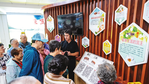 在楊金榮的養殖基地,一個個房子形狀的蜂箱特別醒目:上有屋脊房頂,下面還有支架,既能防曬、防雨,還能預防蟲害。他在鎮上建起的蜜蜂博物館,將老輩人使用過的養蜂器具、書籍等陳列其中,全方位展示當地養蜂歷史。楊金榮說,他最引以為榮的是自己的蜂產品拿過三項全國大獎,是科技賦能讓養蜂這個老行當走出了新路子。