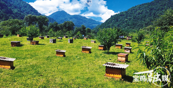 麟游縣九成宮鎮紫石崖村的養蜂之路,正是寶雞蜂業發展的一個生動縮影。這個村最大跨度30公里,大樹下、草叢中蜂箱星羅棋布。村支書陳興平是當地有名的養蜂能手,一提起蜂,眼里就有光。他回憶說:“上世紀80年代,大伙拿廢棄的粗木頭掏成蜂窩養蜂,也在土崖上挖洞養蜂,收獲的蜂蜜主要是自己吃。”