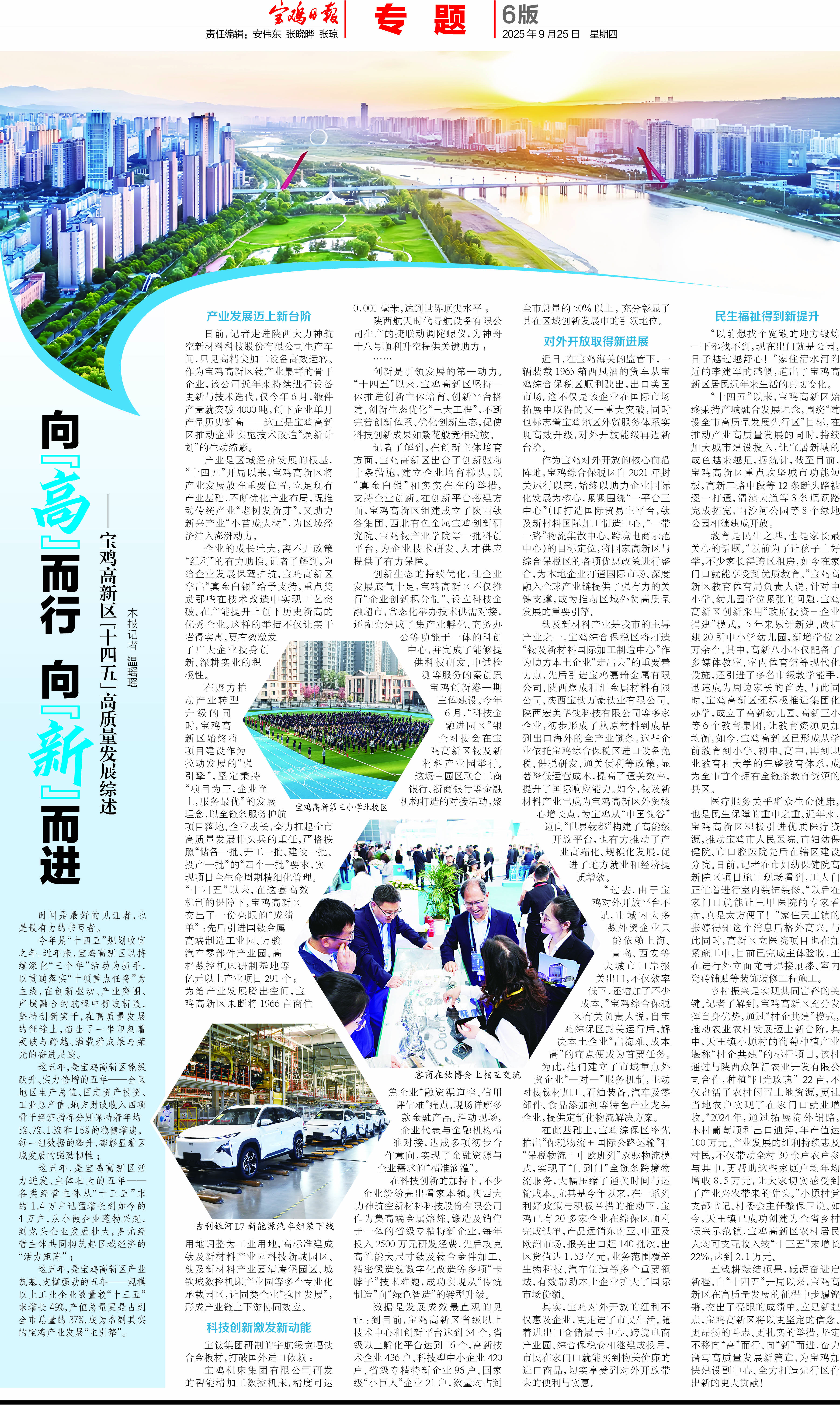 今年是“十四五”規(guī)劃收官之年。近年來,寶雞高新區(qū)以持續(xù)深化“三個年”活動為抓手,以貫通落實(shí)“十項(xiàng)重點(diǎn)任務(wù)”為主線,在創(chuàng)新驅(qū)動、產(chǎn)業(yè)突圍、產(chǎn)城融合的航程中劈波斬浪,堅持創(chuàng)新實(shí)干,在高質(zhì)量發(fā)展的征途上,踏出了一串印刻著突破與跨越、滿載著成果與榮光的奮進(jìn)足跡。