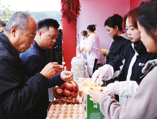 現場,宣讀了省市“鄉村工匠”表彰名單,以表達對傳統技藝與匠人精神的崇高禮贊。隨后,一場充滿鄉土氣息與時代活力的文藝會演精彩上演,同步舉辦了農民趣味運動會,來自全縣10個鎮的隊伍同臺競技,大家在競技中共享豐收喜悅。在豐收成果展示區,全縣10個鎮的特色農產品與文化創意產品齊聚于此,曹家灣鎮的脆甜蘋果和特色面點、河北鎮的蕎麥系列產品、八渡鎮的特色板栗等美食攤前圍滿了品嘗的群眾。隴縣臉譜、傳統刺繡等非遺手工藝品精美別致,彰顯地域文化魅力;綠色無公害的農特產品、畜禽蛋奶和生態蜂蜜也備受青睞,現場購銷兩旺。