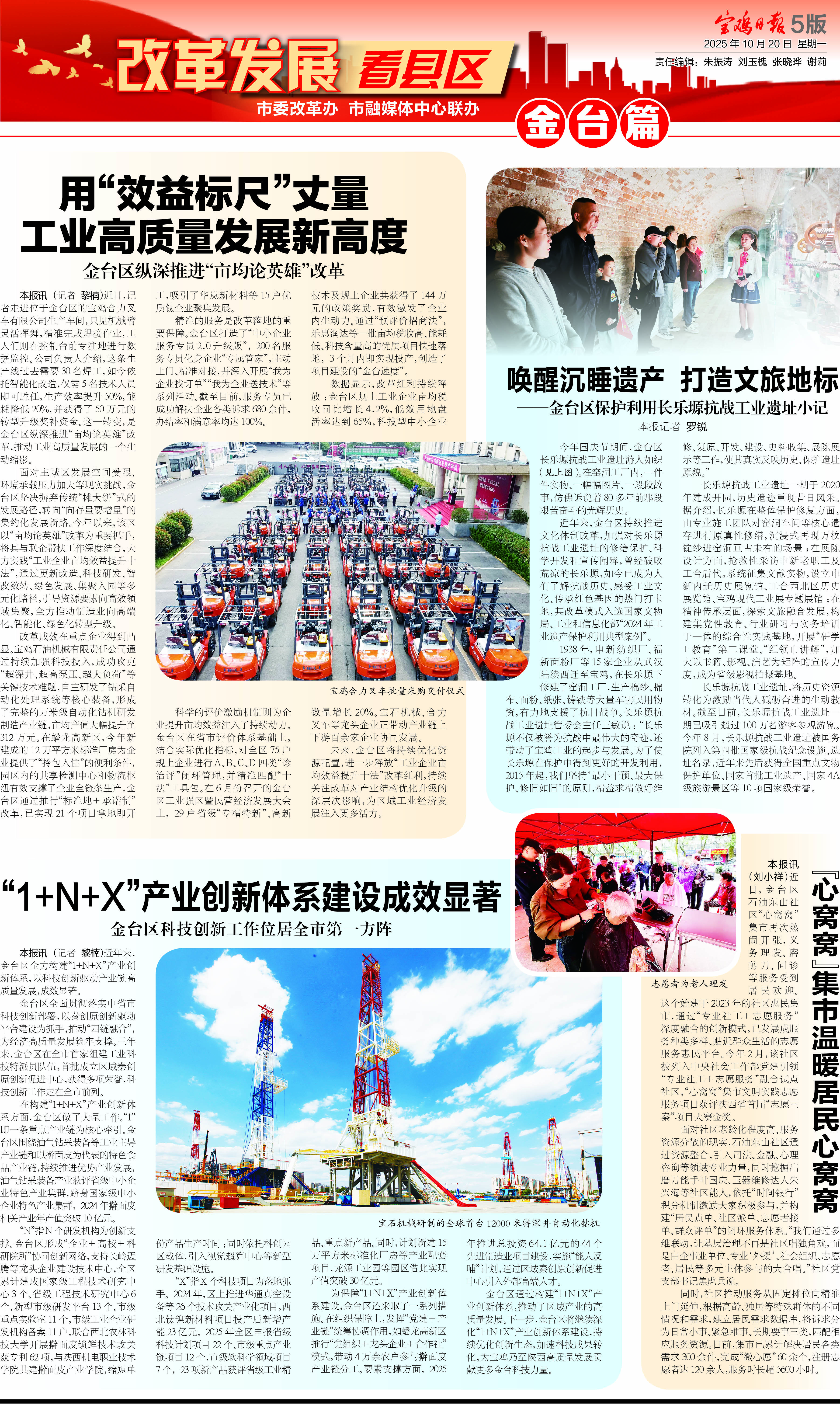 數據顯示,改革紅利持續釋放:金臺區規上工業企業畝均稅收同比增長4.2%,低效用地盤活率達到65%,科技型中小企業數量增長20%。寶石機械、合力叉車等龍頭企業正帶動產業鏈上下游百余家企業協同發展。