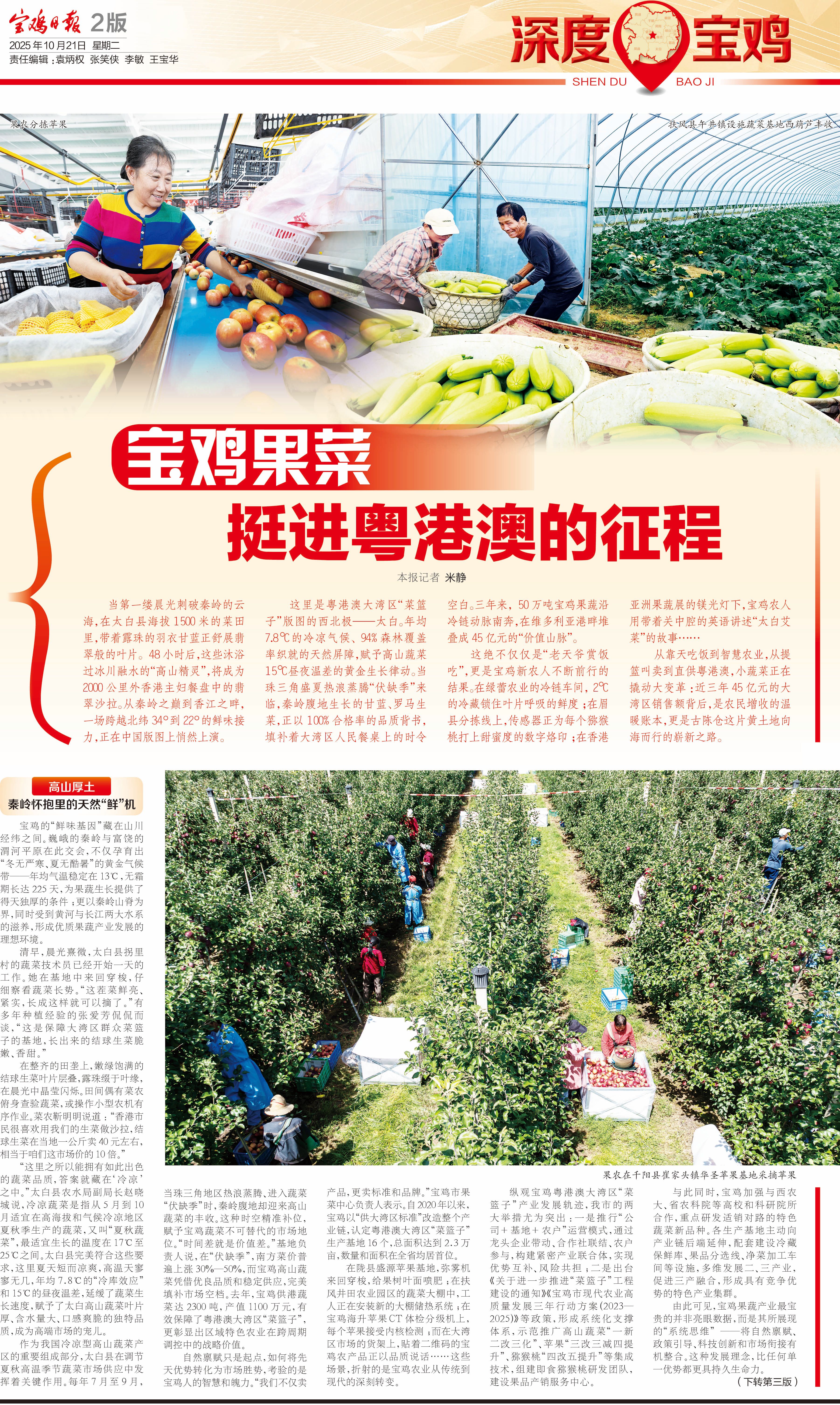 從秦嶺山脈一路向南到達大灣區(qū),我們看到的不僅是一條蔬菜供應鏈,更是連接人與自然、傳統(tǒng)與現代、西北與大灣區(qū)的紐帶。這條紐帶,見證著中國現代農業(yè)發(fā)展的新路徑,詮釋著“綠水青山就是金山銀山”的深刻內涵。從北緯34°到22°,寶雞蔬菜的征程還在繼續(xù),故事才剛剛開始。