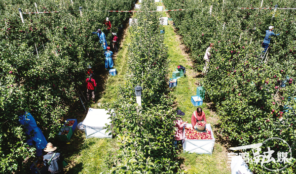 千陽因地處渭河重要支流千河之北而得名,是關中平原西端新興的生態(tài)農業(yè)縣。9月,北臺村的果園里,紅彤彤的蘋果掛滿枝頭,村民們忙著采摘、分揀、裝箱、搬運,一派熱火朝天的豐收景象。“今年這個基地170多畝蘋果又迎來了大豐收,畝產達3噸,價位高于去年同期水平。”寶雞海升企業(yè)副總經理康永鵬看著工人裝車時難掩喜悅。一輛輛滿載蘋果的貨車緩緩駛離果園,這是深圳客商鄭科訂的,他一次性訂購了10萬公斤蘋果。