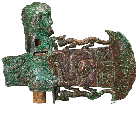 由此可見,鉞不僅是兵器,更是禮器。寶雞青銅器博物院展出的人頭銎內鉞,精美程度在院藏其他西周青銅鉞之上,說明其更常作為禮器使用。