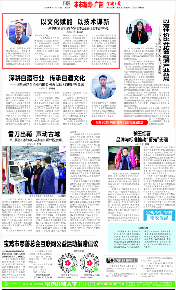 郭坤亮說,酒是文化的載體,文化是酒的靈魂,做酒人肩負著傳承酒文化的責任。寶雞歷史文化底蘊極為深厚,擁有三千年的白酒釀造歷史。他希望通過本屆酒展會,自己和團隊能與本地乃至全國的酒企共同分享、交流行業前沿技術,在深耕白酒釀造技術和文化傳播領域的道路上攜手前行,共同推動中國白酒香飄世界。