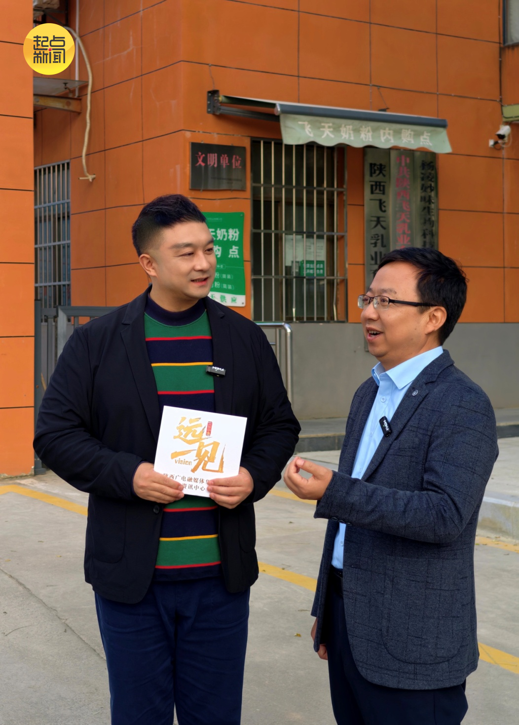 千陽縣畜產局局長張小杰(右)和主持人靳博介紹千陽奶山羊產業發展