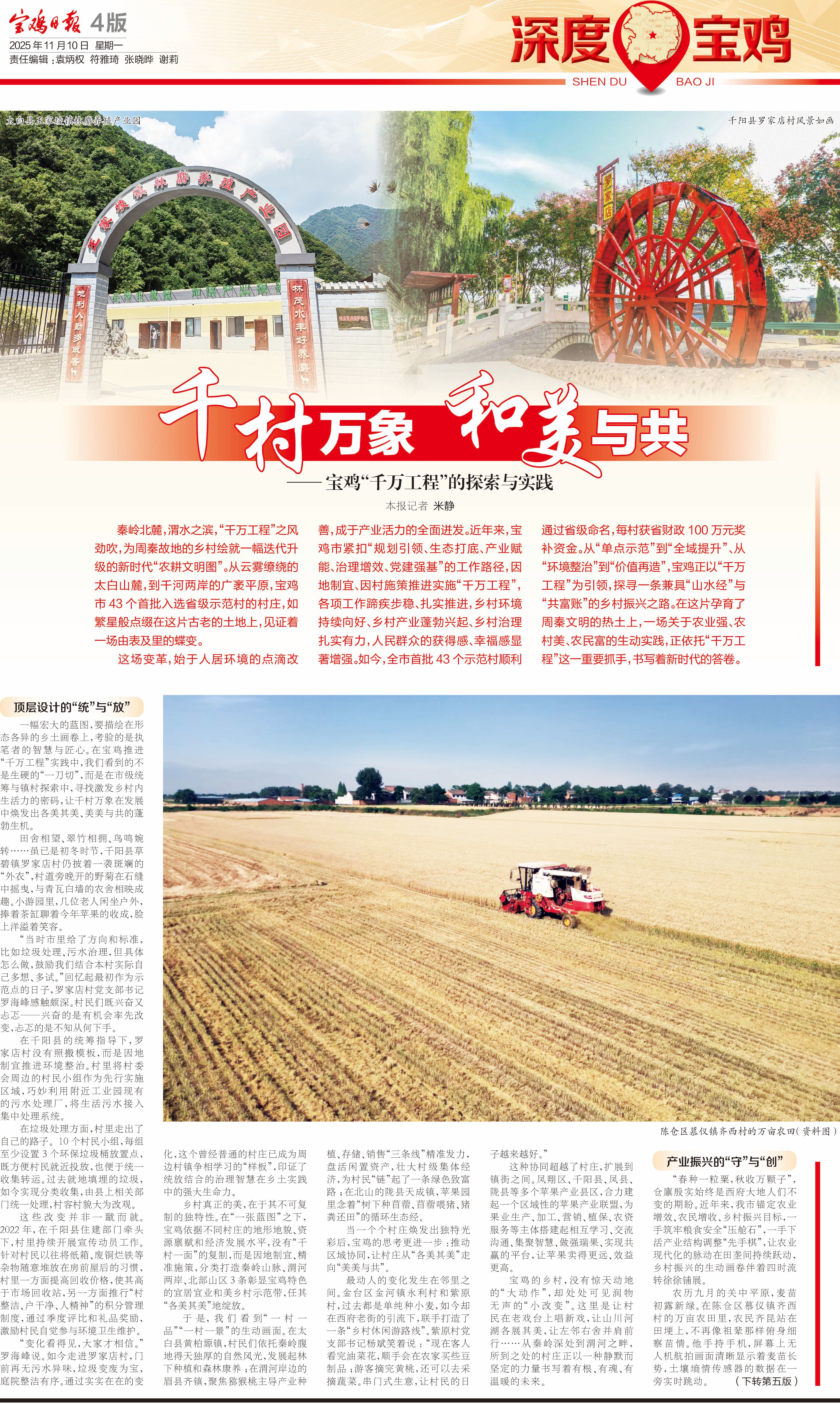 一幅宏大的藍圖,要描繪在形態各異的鄉土畫卷上,考驗的是執筆者的智慧與匠心。在寶雞推進“千萬工程”實踐中,我們看到的不是生硬的“一刀切”,而是在市級統籌與鎮村探索中,尋找激發鄉村內生活力的密碼,讓千村萬象在發展中煥發出各美其美、美美與共的蓬勃生機。