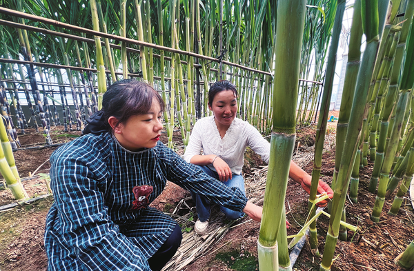 11月10日,筆者在該合作社的甘蔗基地看到,大棚內甘蔗挺拔而立,莖稈飽滿、色澤鮮亮。不少游客專程前來,或現場品嘗選購,或走進“蔗林”拍照打卡。“聽說咱們隴縣也能種甘蔗,我特別好奇,就帶孩子來看看。”游客林麗萍笑著說。據合作社負責人趙宇潔介紹,今年3月合作社從廣西引進優質甘蔗品種,在1.5畝土地上試種了4000余株。為了保證甘蔗正常出苗和茁壯生長,他們專門加蓋了溫室大棚,并鋪設了灌溉帶等設施。在播種、間苗、剝葉等關鍵環節,合作社特邀技術人員到現場指導,最終摸索出深耕施足基肥、分期追肥、強化培土和除草等適宜甘蔗在北方種植的管理方法。