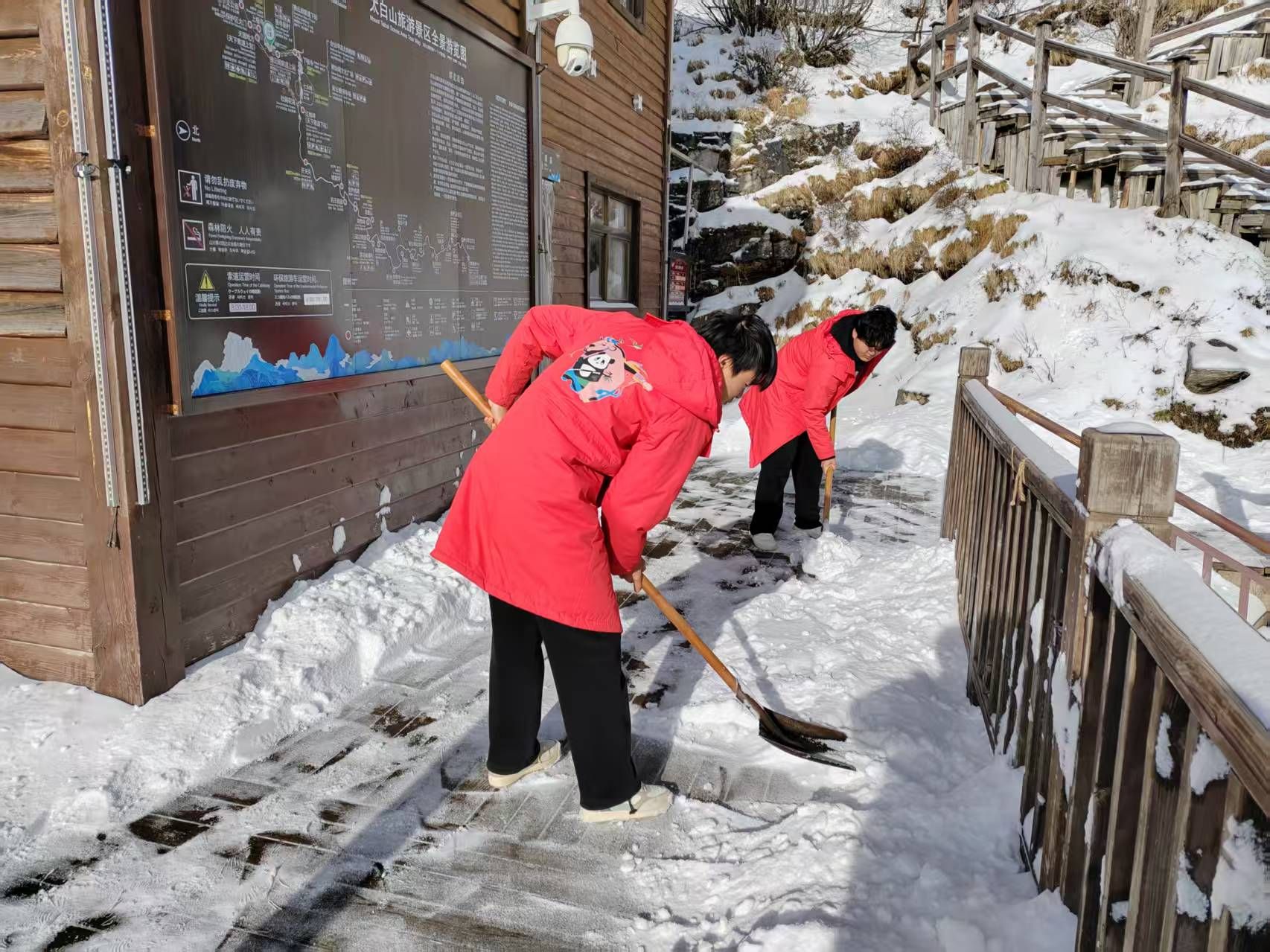 目前景區(qū)索道正常運營,游客可乘天下索道感受“一日歷四季”的立體氣候體驗。建議前來觀賞的游客注意防寒保暖,確保出行安全。