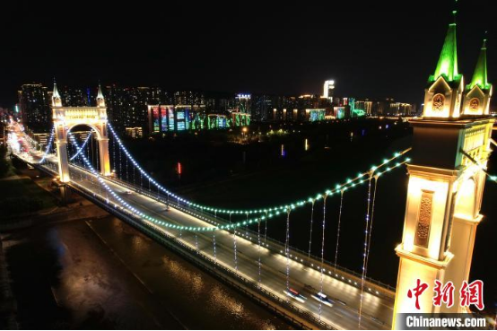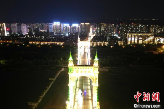 6月7日,陜西寶雞,聯盟大橋夜景如畫。