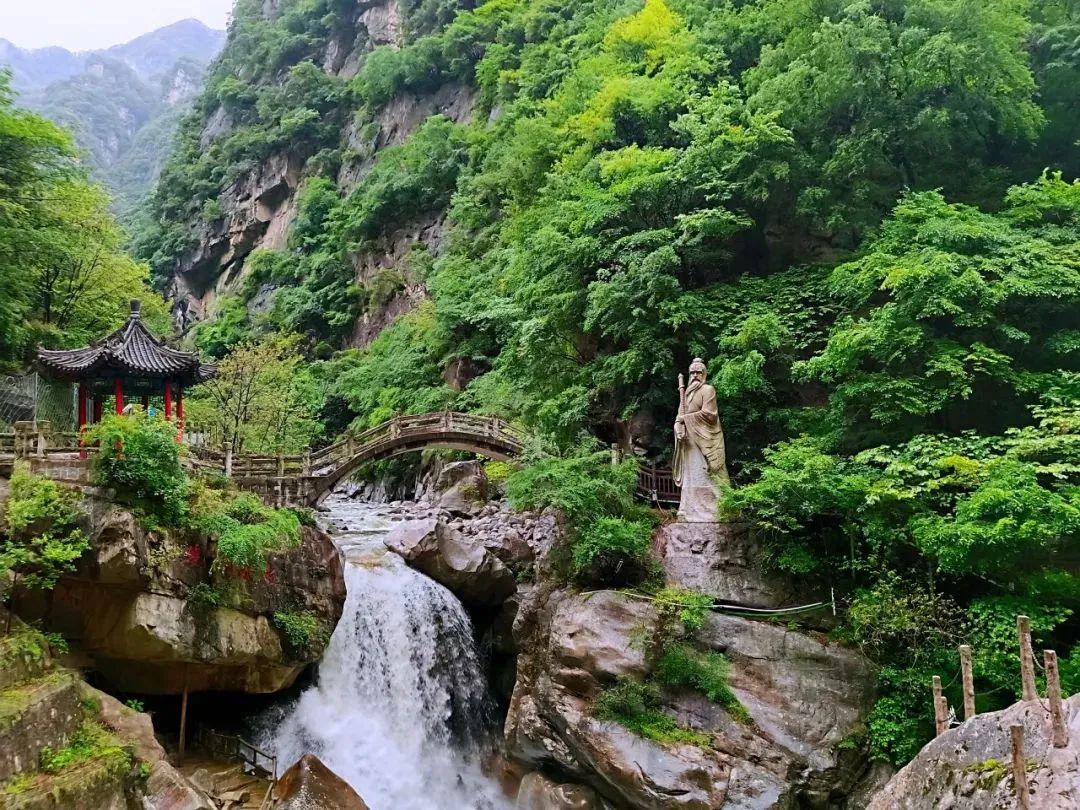 山開雙洞,流水飛瀑,洞隱瀑后。