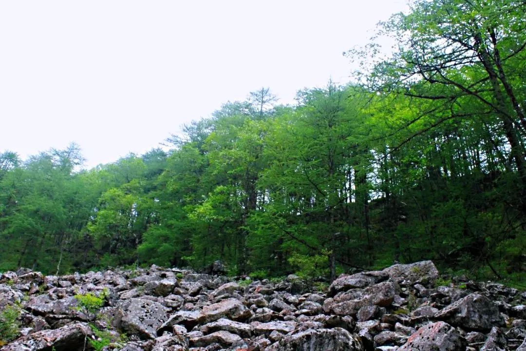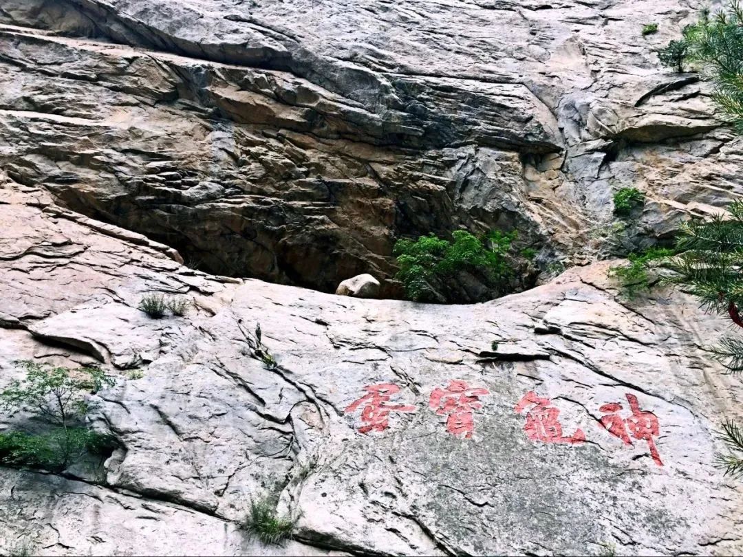 此處峽谷幽深,山體絕壁如削,聳拔千刃,仰望天空悠遠深蘭,山峰扶搖,冷峻巍然,森森然有不盡的神秘之感。在距地面近二十米的絕壁之上生有一穴,不知何故,偌大的洞穴中只有三物:一石多生棱角似龜狀,一石圓形似卵,從石崖脊壤中生出枝葉茂密的落葉小櫟一株,靜置洞中千年,形似龜、蛋,故名神鬼寶蛋。