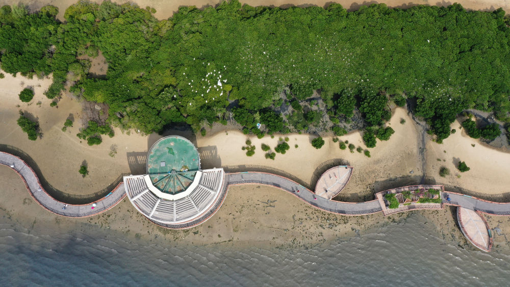 俯瞰廣東湛江市區海邊的紅樹林(2023年5月25日攝,無人機照片)。