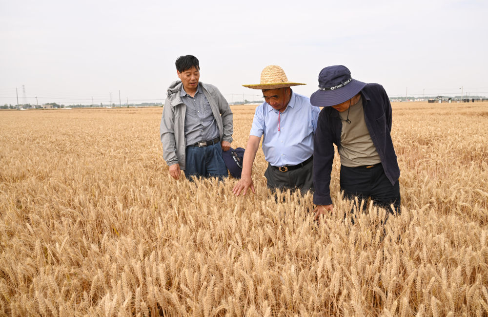 2024年5月28日,在太和縣淙祥現(xiàn)代農(nóng)業(yè)種植專業(yè)合作社,徐淙祥察看小麥的生長(zhǎng)情況。 2024年5月29日,在太和縣淙祥現(xiàn)代農(nóng)業(yè)種植專業(yè)合作社,徐淙祥(中)和農(nóng)技專家一起為試驗(yàn)麥種測(cè)產(chǎn)。