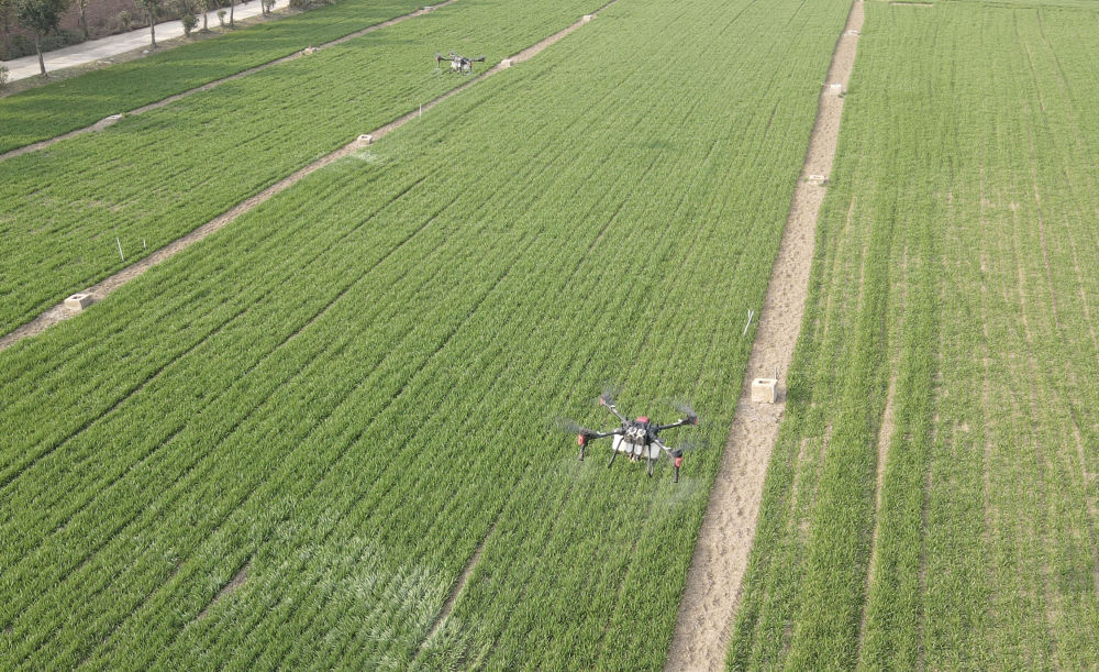2023年2月21日,在太和縣淙祥現(xiàn)代農(nóng)業(yè)種植專業(yè)合作社,無人機(jī)噴灑農(nóng)藥(無人機(jī)照片)。 2023年6月26日,徐淙祥(左)在太和縣舊縣鎮(zhèn)張槐村指導(dǎo)村民張丙銀種植大豆。 2024年5月29日,在太和縣淙祥現(xiàn)代農(nóng)業(yè)種植專業(yè)合作社,農(nóng)機(jī)手操作機(jī)械設(shè)備收割小麥(無人機(jī)照片)。