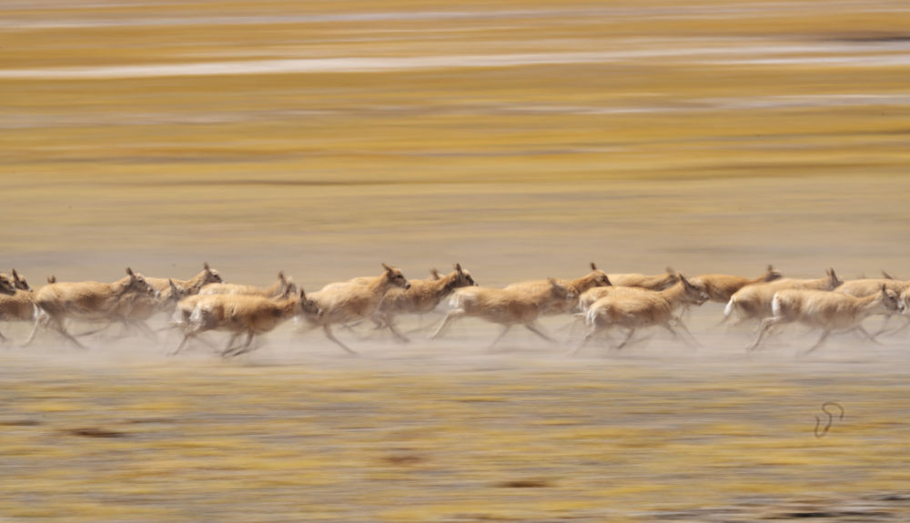 ??2024年6月13日,在羌塘國家級自然保護區(qū),遷徙中的藏羚羊奔跑起來。新華社記者費茂華攝