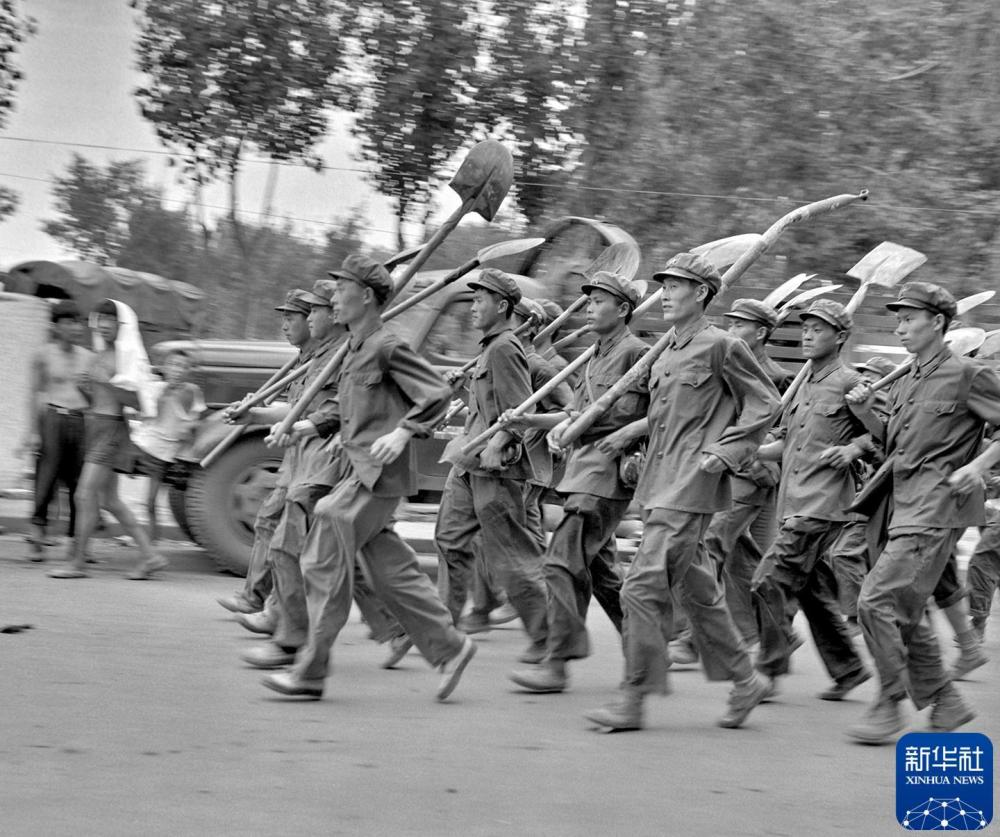 1976年夏,解放軍指戰員前往唐山地震災區參加救災。新華社記者 武清月 攝