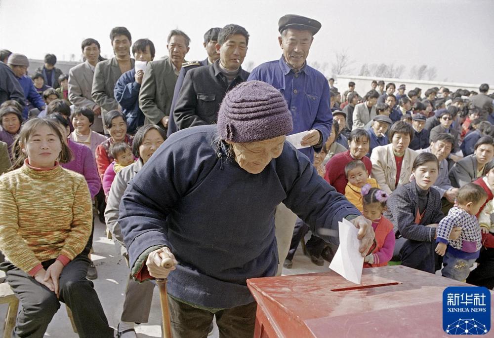 1998年11月26日,安徽鳳陽縣小崗村84歲的楊繼英投票選舉新一屆村委會干部。 新華社發