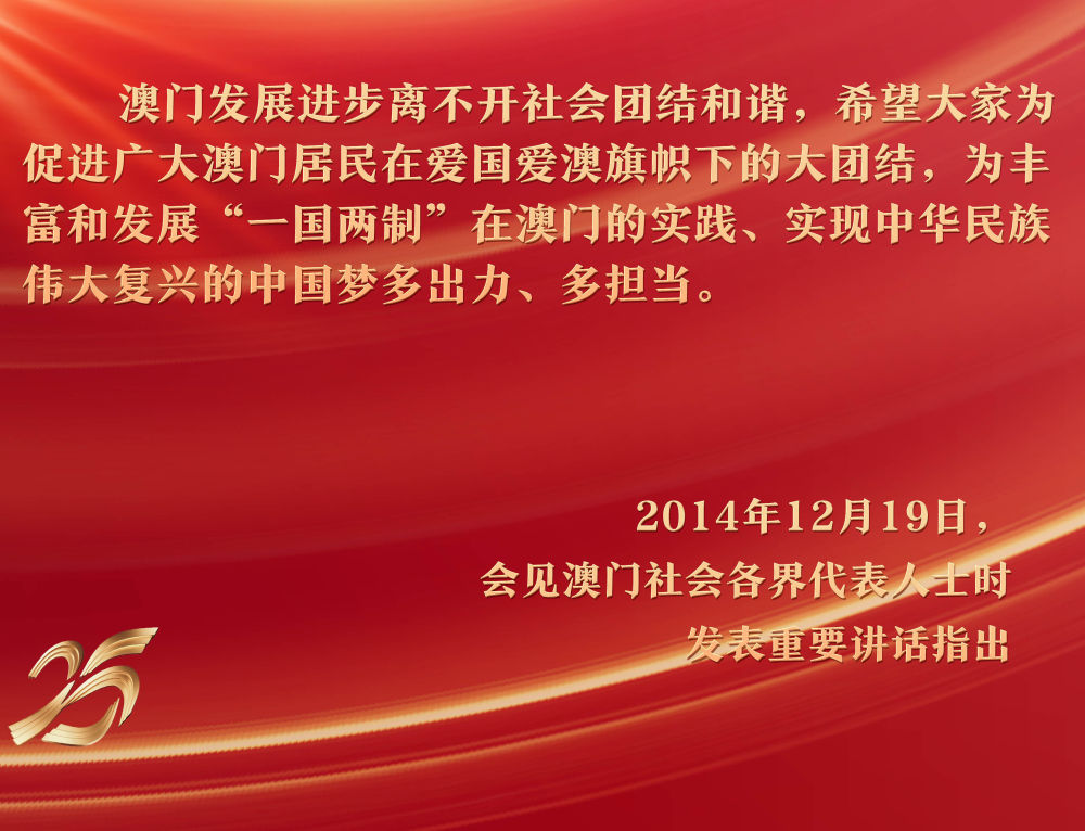 2024年12月20日,澳門將迎來回歸祖國25周年。