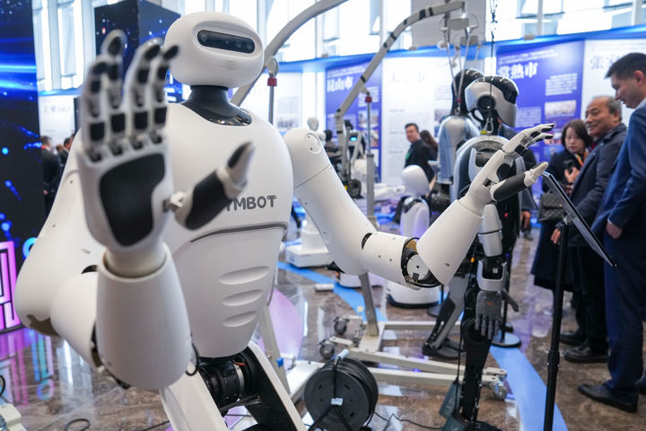 2025年2月14日在2025年蘇州市“人工智能+”創新發展推進大會暨人工智能賦能新型工業化深度行(蘇州站)活動現場拍攝的人形機器人。新華社記者 李博 攝