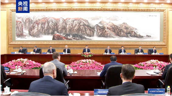 3月28日上午,國家主席習近平在北京人民大會堂會見國際工商界代表。40余位外資企業全球董事長、首席執行官和商協會代表參加會見。