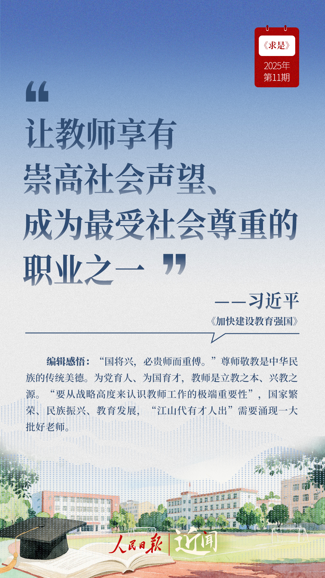 教育是國之大計、黨之大計。日前,《求是》雜志發(fā)表習(xí)近平總書記重要文章《加快建設(shè)教育強國》。“全面把握教育的政治屬性、人民屬性、戰(zhàn)略屬性”“讓教育改革發(fā)展成果更多更公平惠及全體人民”“讓教師享有崇高社會聲望、成為最受社會尊重的職業(yè)之一”……通過這些話,一起感悟習(xí)近平總書記對教育強國建設(shè)的謀劃與部署。