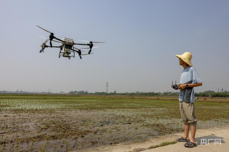新農人王海聰正在操控植保無人機(央廣網發 侯建明 攝)