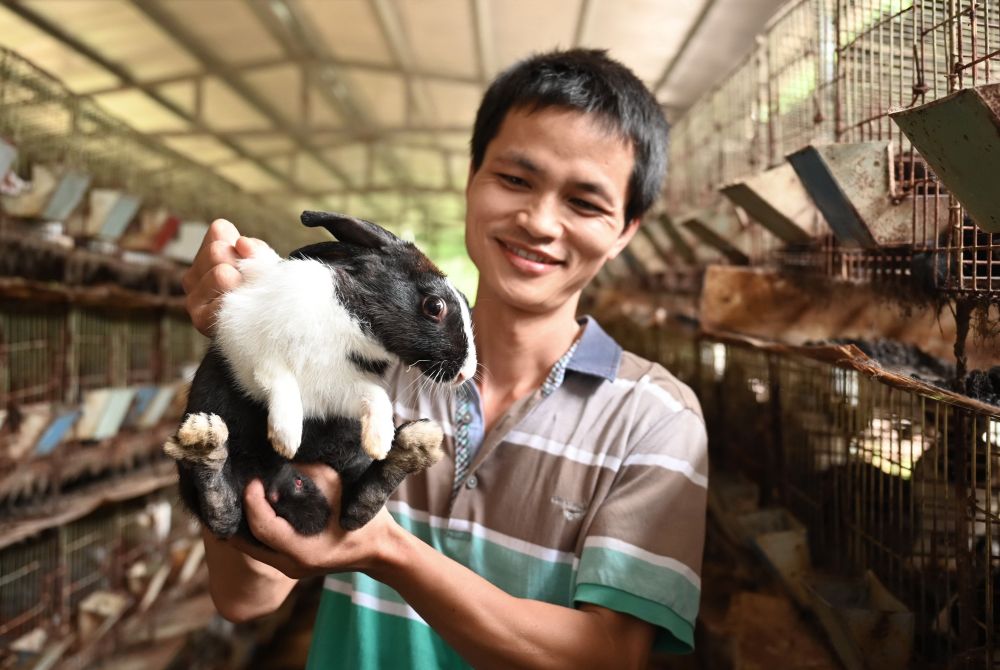 ??涂銀春在展示他養(yǎng)殖的兔子(2020年8月21日攝)。涂銀春曾是福建省長汀縣涂坊鎮(zhèn)的建檔立卡貧困戶。他2013年開始試養(yǎng)兔子,2016年在鎮(zhèn)村干部鼓勵和支持下參加專業(yè)技能培訓,并通過小額信貸擴大生產(chǎn),成功脫貧。新華社記者 林善傳 攝