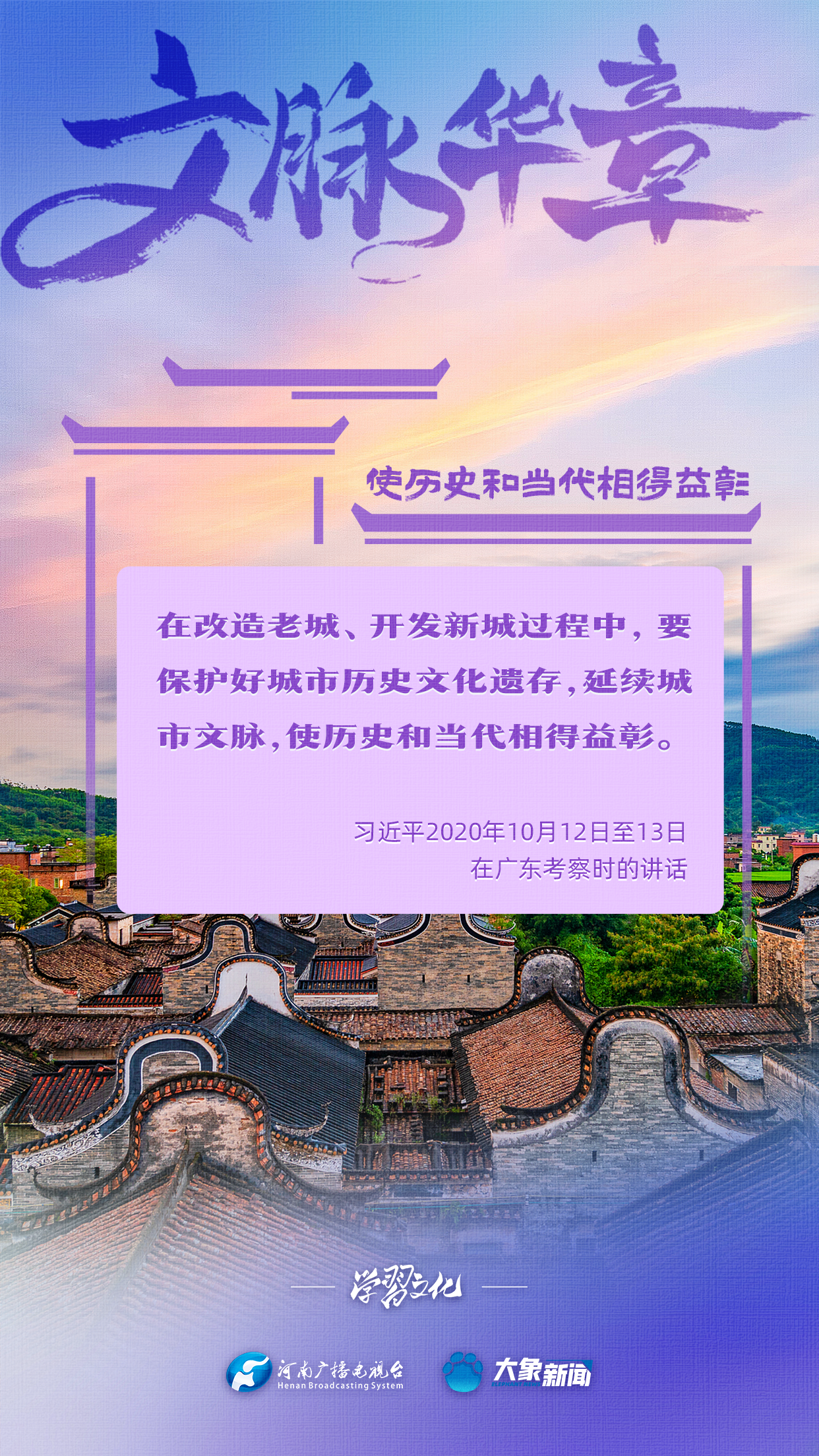 習(xí)近平總書記非常注重城市發(fā)展中的文脈賡續(xù),多次強(qiáng)調(diào)“要結(jié)合區(qū)域文化、歷史傳承、時代要求,打造城市特色風(fēng)貌”“使歷史和當(dāng)代相得益彰”等等,著力引導(dǎo)各地各部門完善歷史文化保護(hù)傳承體系,完善城市風(fēng)貌管理制度,保護(hù)城市獨特的歷史文脈、人文地理、自然景觀。大象新聞為您梳理,我們一起學(xué)習(xí)。
