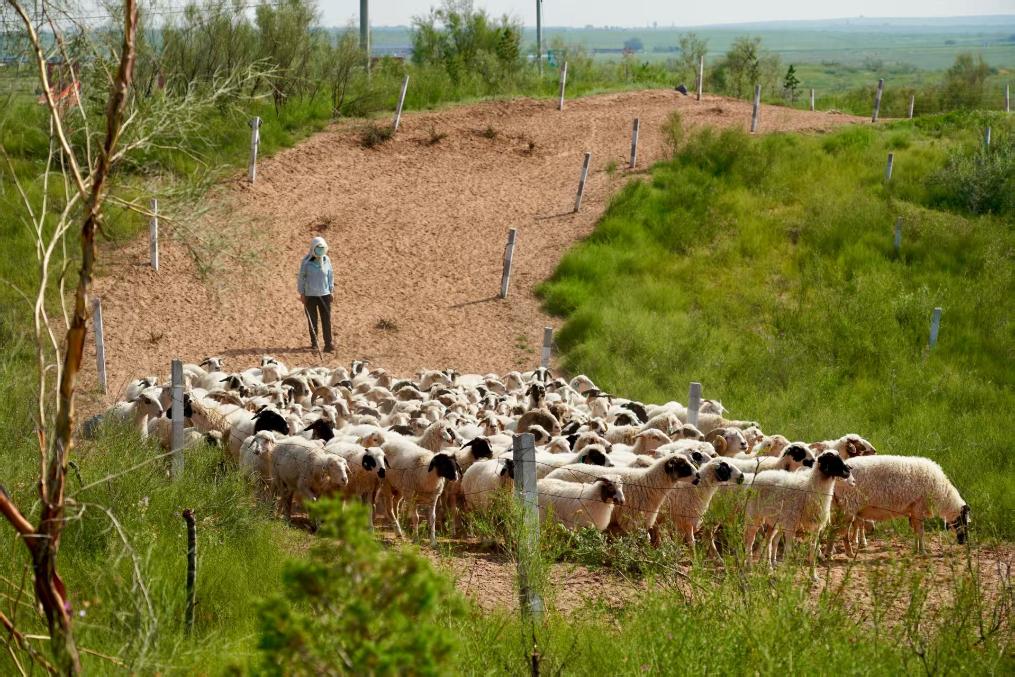 鹽池縣灘羊生態牧場養殖的灘羊。新華社記者張瀚暘 攝