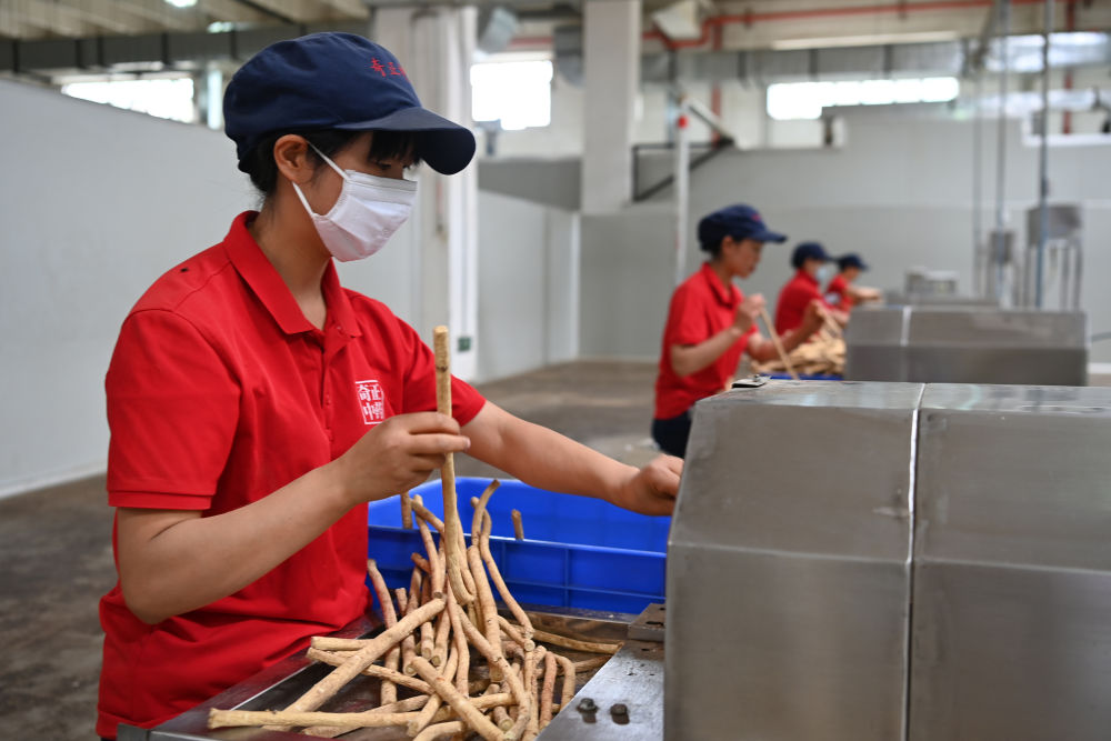 2024年7月23日,工人在甘肅定西隴西縣文峰鎮(zhèn)一家藥材企業(yè)加工中藥材切片。隴西中藥材種植歷史悠久,盛產(chǎn)300余種中藥材,是全國“道地藥材”的重要產(chǎn)區(qū)之一。近年來,當(dāng)?shù)赝ㄟ^推行產(chǎn)地種植標(biāo)準(zhǔn)化、藥材加工精深化、原藥倉儲(chǔ)規(guī)模化、藥材交易市場化、質(zhì)量監(jiān)測常態(tài)化、產(chǎn)業(yè)發(fā)展品牌化等改革創(chuàng)新舉措,推動(dòng)中醫(yī)藥產(chǎn)業(yè)高質(zhì)量發(fā)展。
