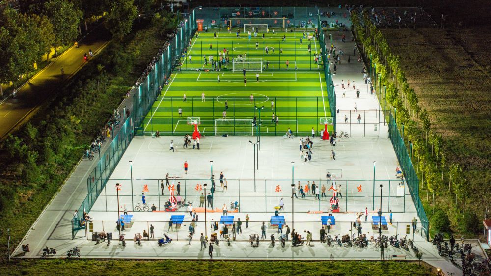 2024年9月21日,居民在山東省寧陽縣城區(qū)一處體育公園內(nèi)運(yùn)動(dòng)(無人機(jī)照片)。近年來,寧陽縣充分利用城市空閑區(qū)域,新建或改建體育健身公園,為居民打造“10分鐘體育健身圈”,讓城市的“金角銀邊”成為全民健身大舞臺(tái)。