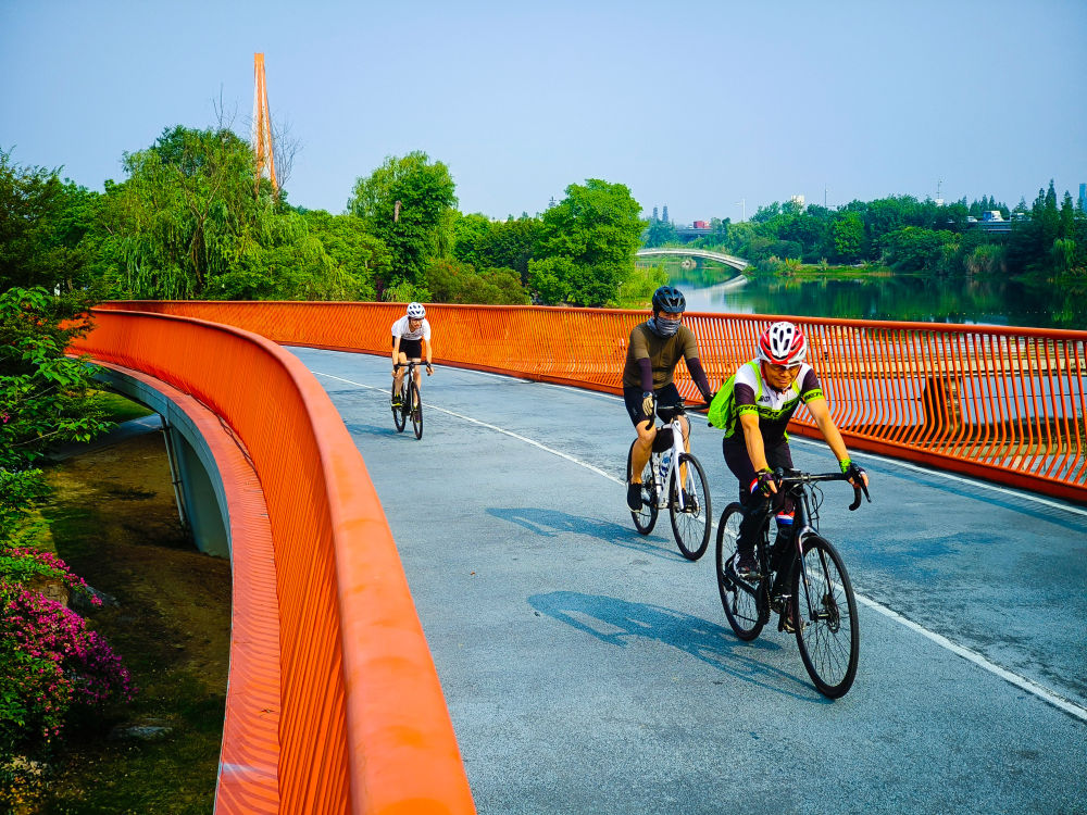 ??2023年6月25日,市民在四川成都錦城湖公園綠道上騎行。近年來,隨著成都承辦的國際賽事越來越多,這座歷史文化名城的體育設施也更加完善:東安湖體育公園、高新體育中心、鳳凰山體育公園等新建場館拔地而起;“橋下空間”、“屋頂空間”、“街旁空間”等等城市的“金角銀邊”也被建設為市民運動好去處。至2022年底,成都擁有體育場地設施6.41萬個,已建成5000多公里長的天府綠道,植入體育設施1700多處。在建設“賽事名城”的目標下,一個個體育地標正在成為成都的新名片。