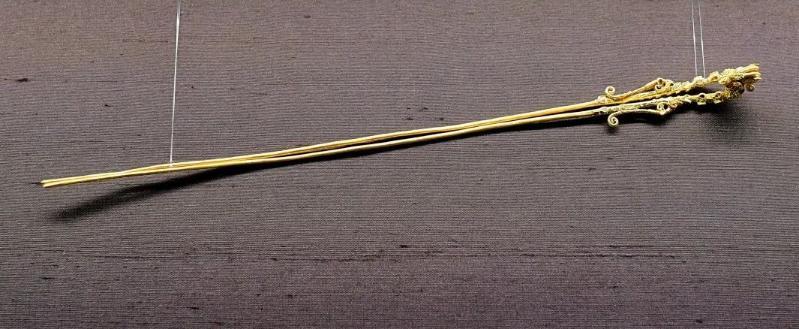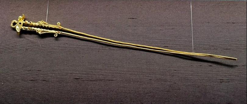 東吳大墓中出土了兩支精美的金釵,一支龍頭昂揚,另一支則是以雙鳥構成類似今天的愛心形,掐絲、炸珠、焊接等工藝裝飾,非常生動。若出土墓確為孫策大喬墓的話,這對龍鳳金釵,或許是孫策與大喬的定情信物。