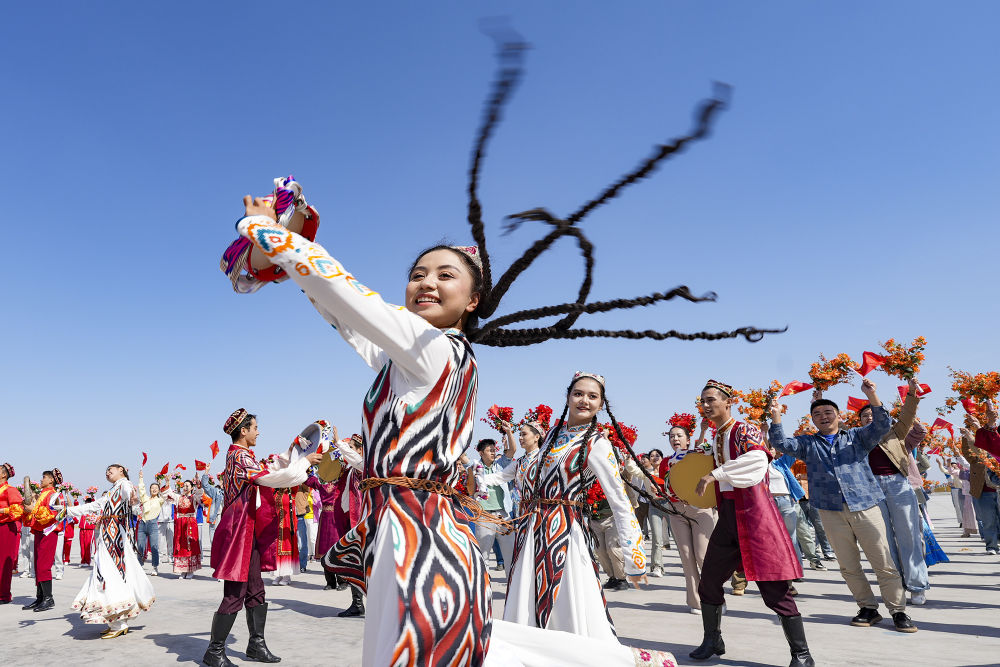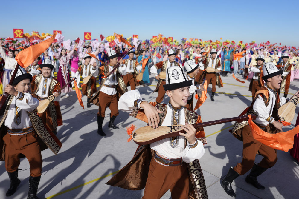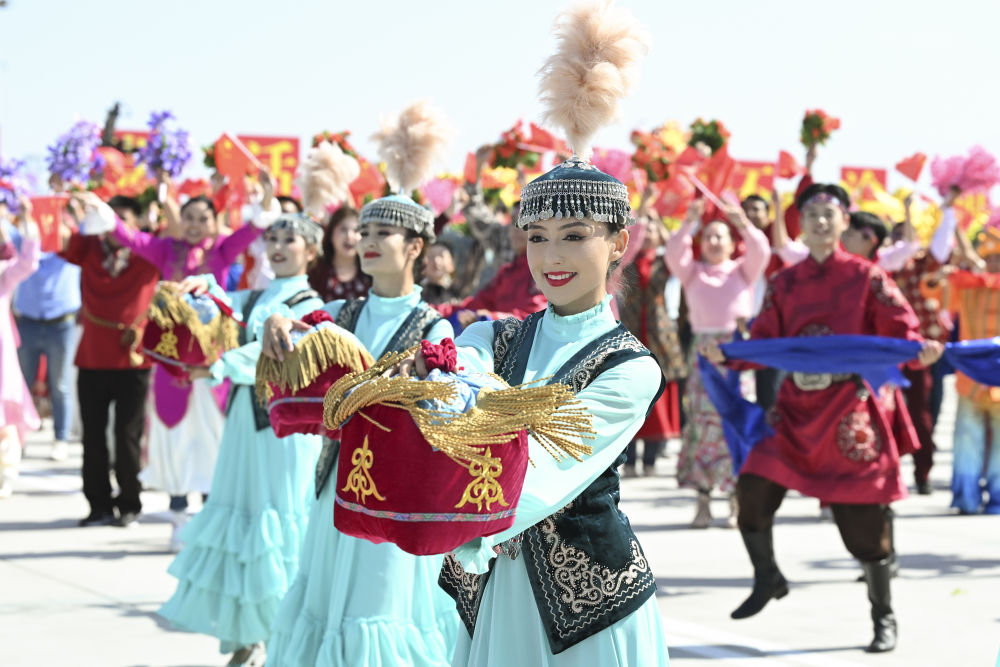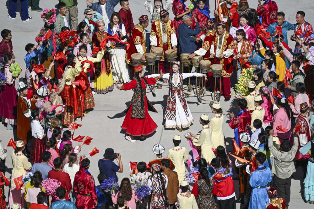 ??新華社記者的鏡頭里,各族兒女簇擁在一起,歡笑在一起;明艷的服飾、熱烈的歌舞,無不展現(xiàn)出團結與奮進的力量。
