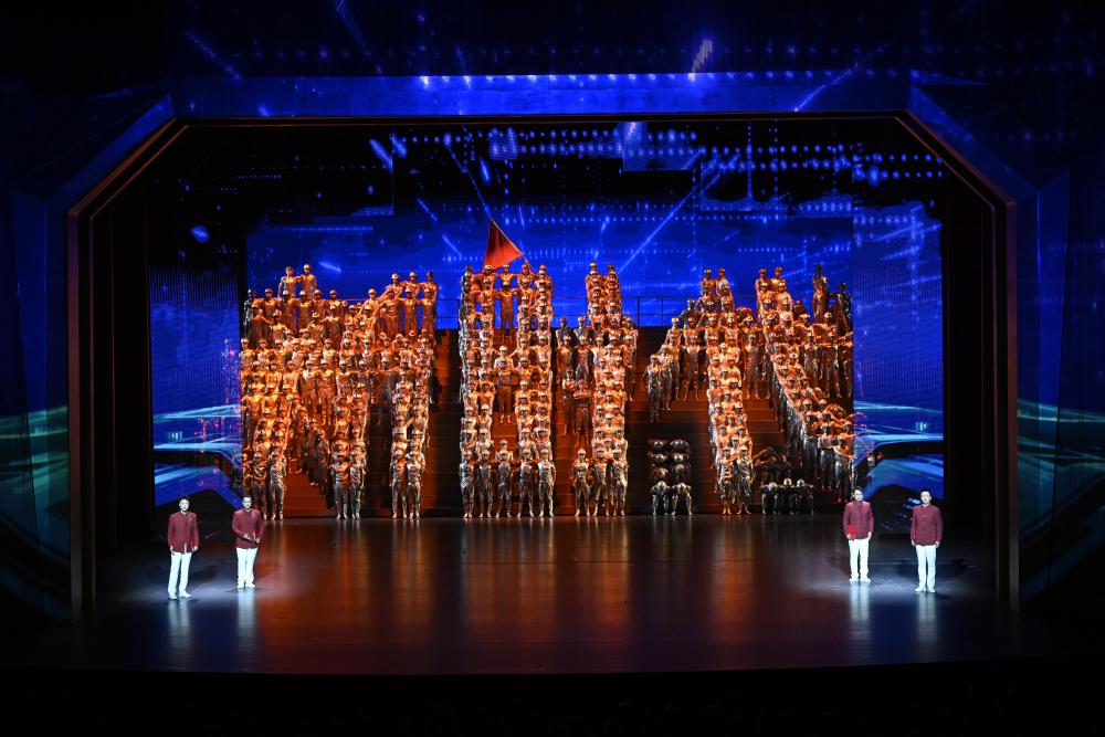 ??演出共3個篇章,展現(xiàn)新疆社會主義建設的火熱場景,表現(xiàn)改革開放給新疆帶來的蓬勃生機,描繪新疆各族兒女同心筑夢新時代的美好圖景。