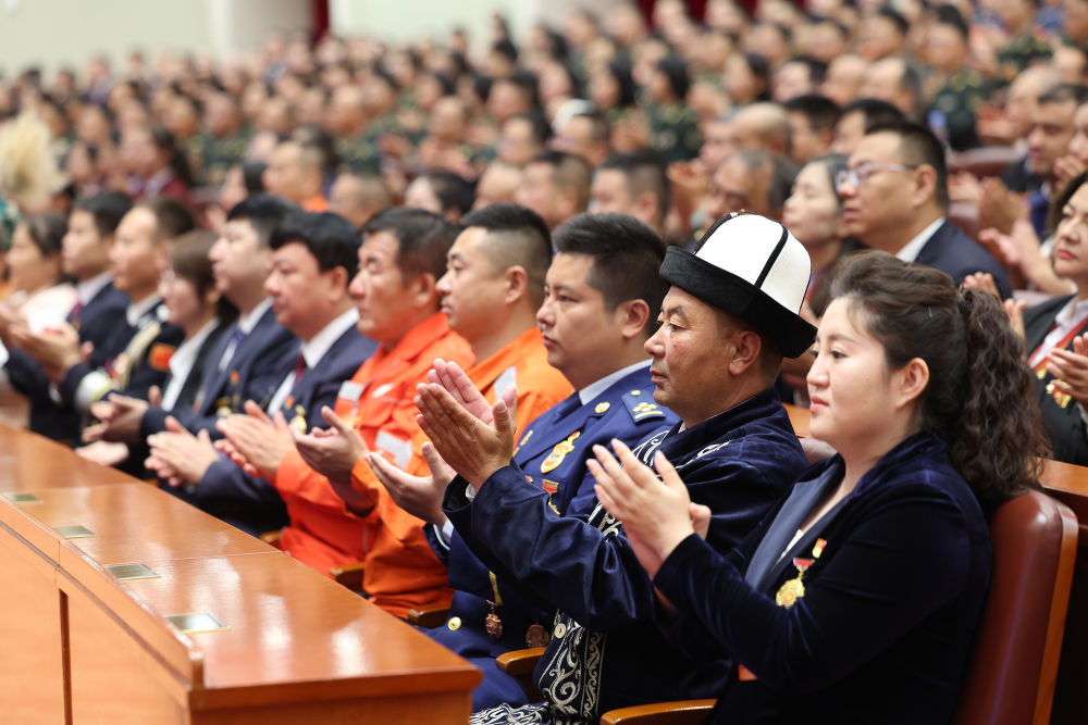 ??25日上午,習近平總書記在烏魯木齊市出席新疆維吾爾自治區(qū)成立70周年慶祝大會,同新疆各族各界干部群眾代表一道,熱烈慶祝新疆維吾爾自治區(qū)成立70周年。