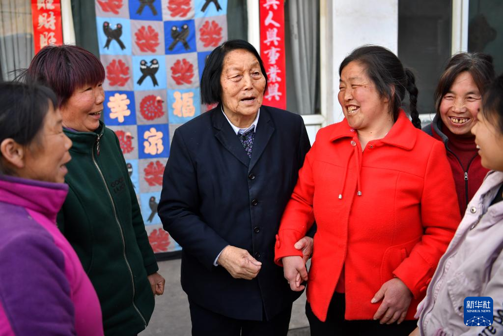 ??2019年3月23日,申紀蘭(左三)在山西省平順縣西溝村與村民分享全國兩會精神。新華社記者 曹陽 攝