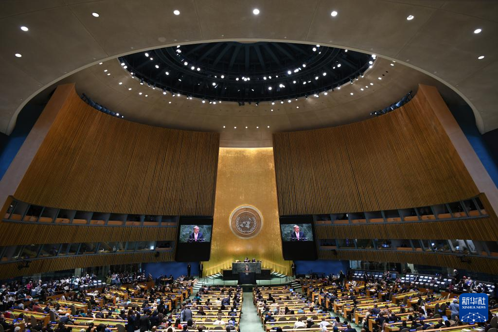??這是2025年9月22日在位于紐約的聯合國總部拍攝的聯合國大會紀念北京世婦會30周年高級別會議現場。新華社記者 李睿 攝