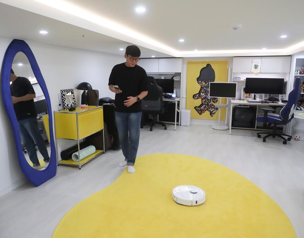 ??2025年10月13日,韓國消費者在首爾的家中使用掃地機器人。新華社記者姚琪琳攝