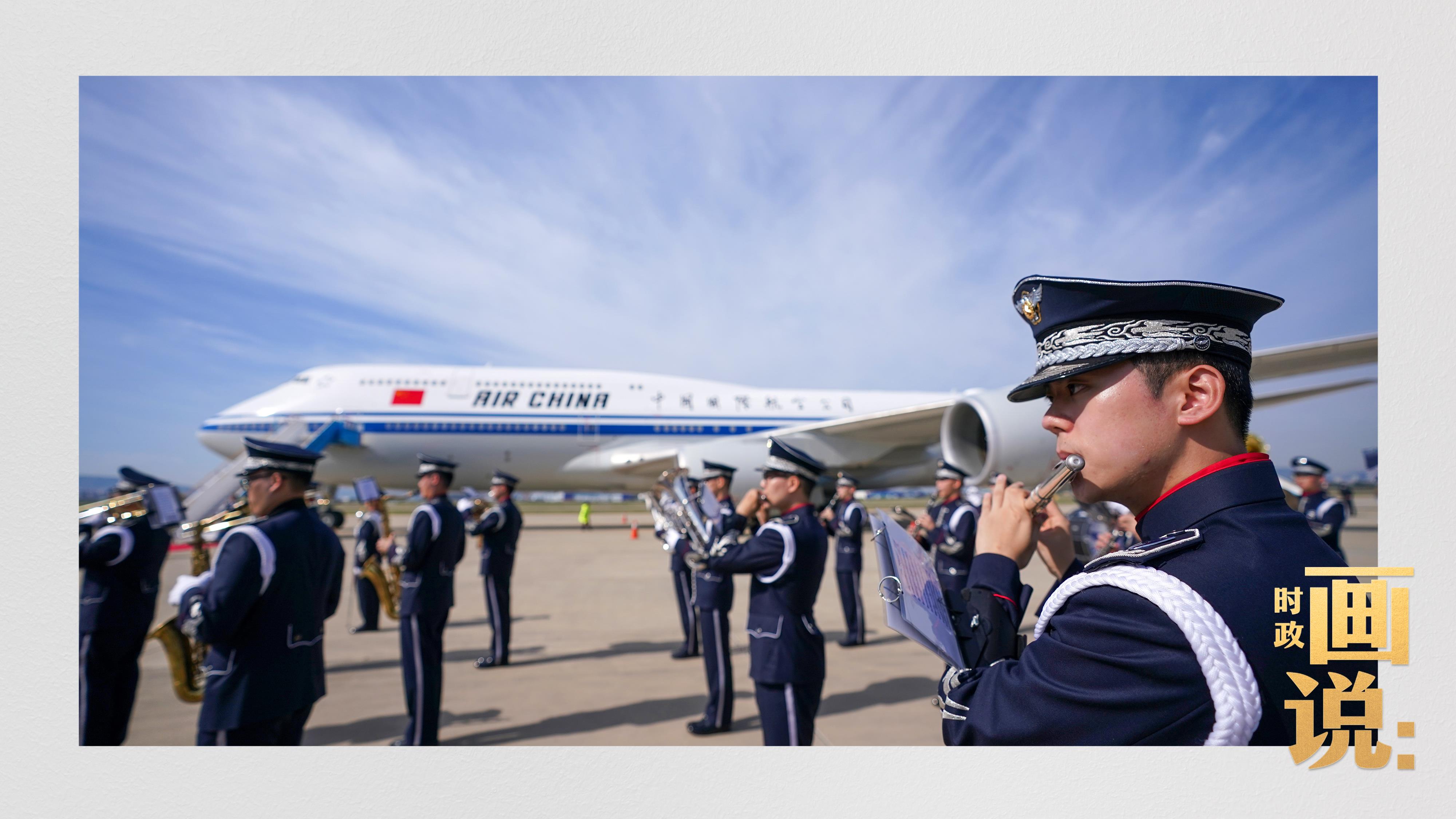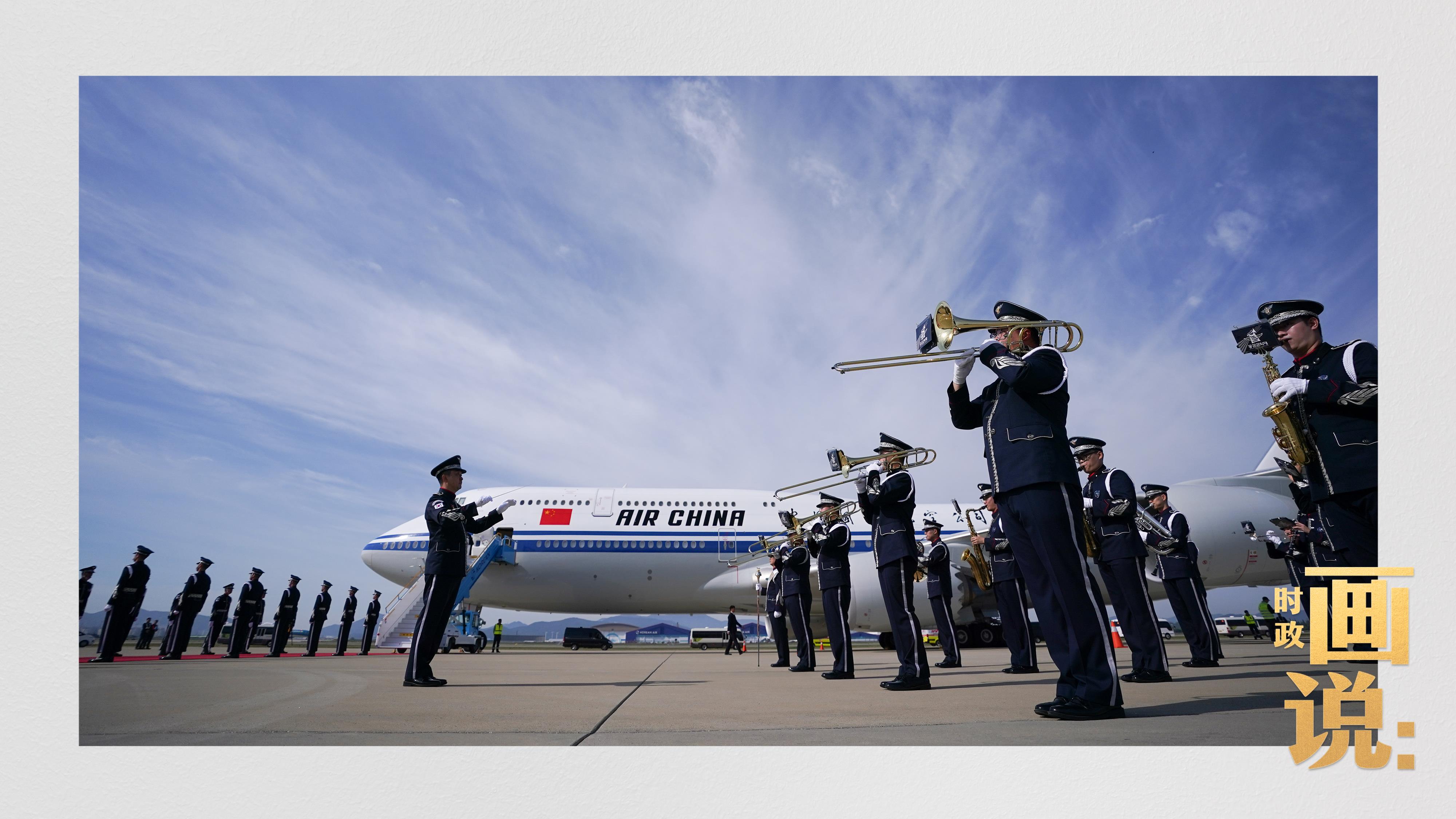 習(xí)近平抵達(dá)釜山金海國際機(jī)場時,韓國外長趙顯等高級官員熱情迎接。禮兵分列紅地毯兩側(cè)致敬,軍樂團(tuán)演奏行進(jìn)樂,機(jī)場鳴放21響禮炮。