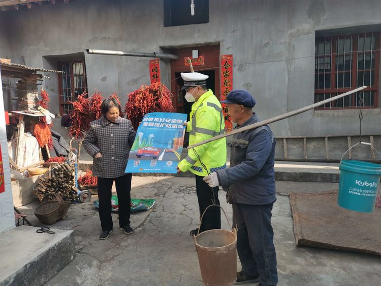 宣傳民警進戶發(fā)放交通安全宣傳畫,宣傳袋等宣傳資料,還在群眾經(jīng)常出現(xiàn)的岔路口、院墻,護欄等地,張貼宣傳海報,懸掛安全提示橫幅,時刻提醒農(nóng)村群眾牢記交通安全,平安過元宵。(鳳縣交警)