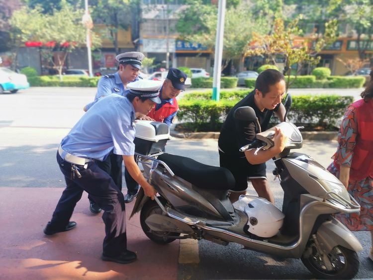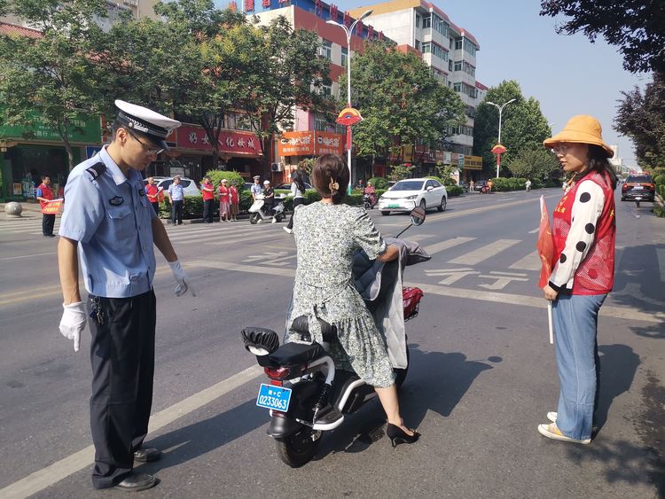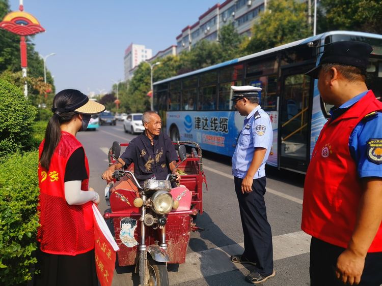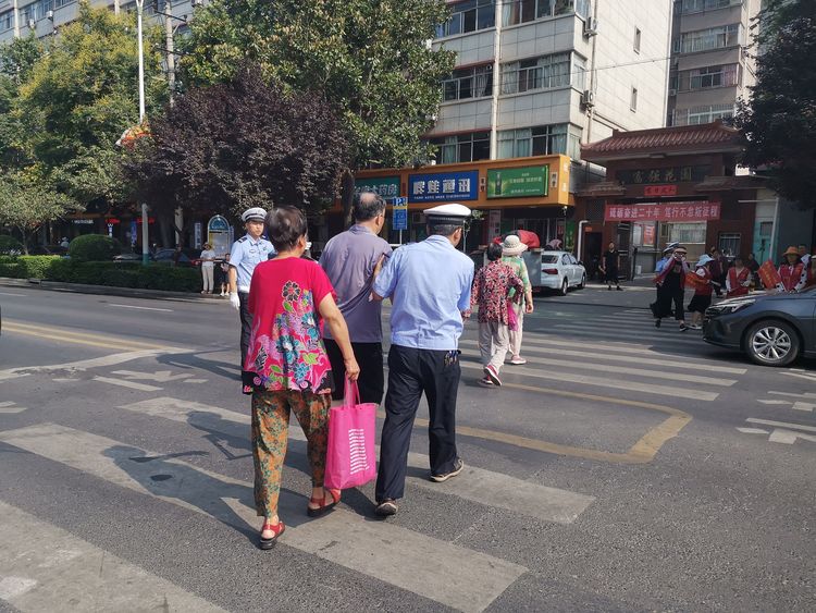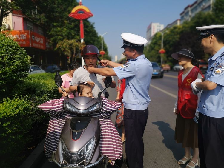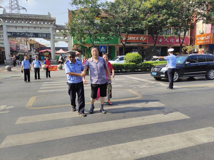 活動中,由執勤民警帶領志愿者們來到轄區車流、人流量較為密集的步行街路口,配合民警以“一盔一帶”、“禮讓斑馬線”等作為勸導活動重點,勸導摩托車、電動車駕駛員佩戴頭盔,提醒過往車輛減速慢行、禮讓行人、勸阻行人橫穿馬路等。在勸導活動中,民警、交通志愿者發現路口有行動不便的老人和年紀較小的孩子準備過馬路時,及時趕去進行暖心幫扶,護送他們安全過馬路。