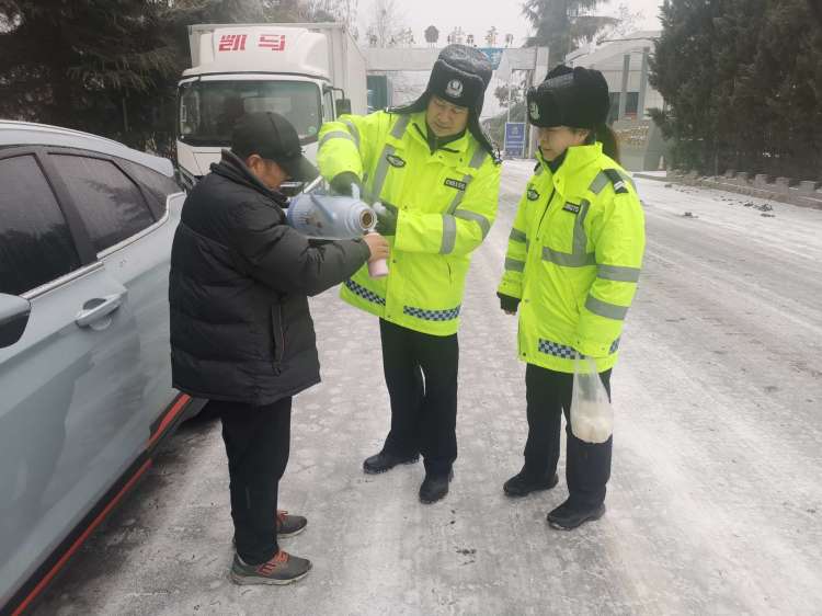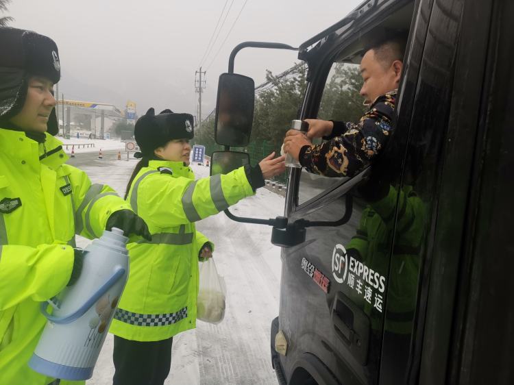 2月2日凌晨,受降雪天氣影響,219省道渭濱段前往鳳縣方向路段實(shí)行臨時(shí)交通管制,部分等待放行的私家車及大型運(yùn)輸車滯留在85公里處。由于附近沒(méi)有住宿、就餐場(chǎng)所,加之駕駛員沒(méi)有做好充分應(yīng)急準(zhǔn)備,面對(duì)突發(fā)情況手足無(wú)措,挨凍受餓在所難免。渭濱大隊(duì)桑園中隊(duì)中隊(duì)長(zhǎng)林永懷一邊派民警下山買來(lái)包子等食物,一邊安排民警返回辦公室燒熱水,挨個(gè)為駕駛員送上熱乎乎的包子,又把他們的水壺一一灌滿。
