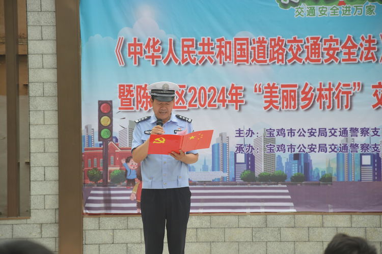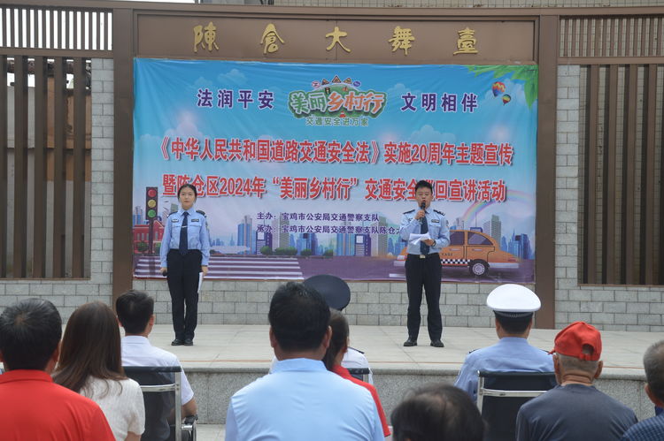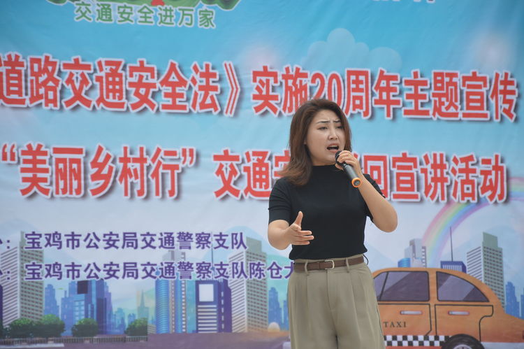 5月31日,由寶雞市公安局交通警察支隊主辦、陳倉大隊承辦的“法潤平安 文明相伴”《中華人民共和國道路交通安全法》實施20周年主題宣傳暨陳倉區2024“美麗鄉村行”交通安全巡回宣講活動,走進陳倉區虢鎮街辦西堡村陽光廣場。活動通過歌舞表演、交通安全說唱、有獎問答等宣傳形式,讓交通安全觀念走進鄉村,深入人心。