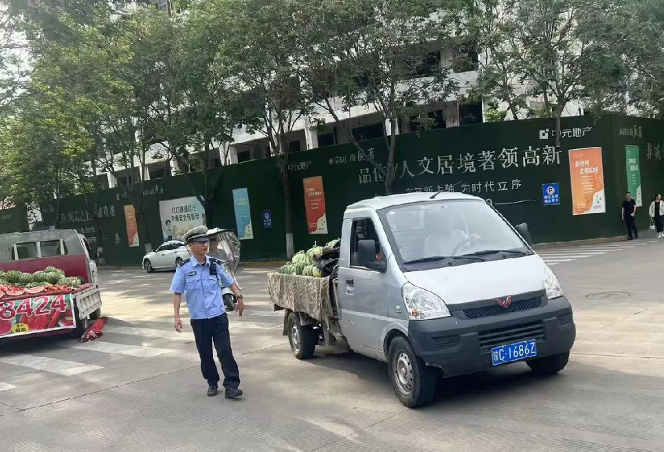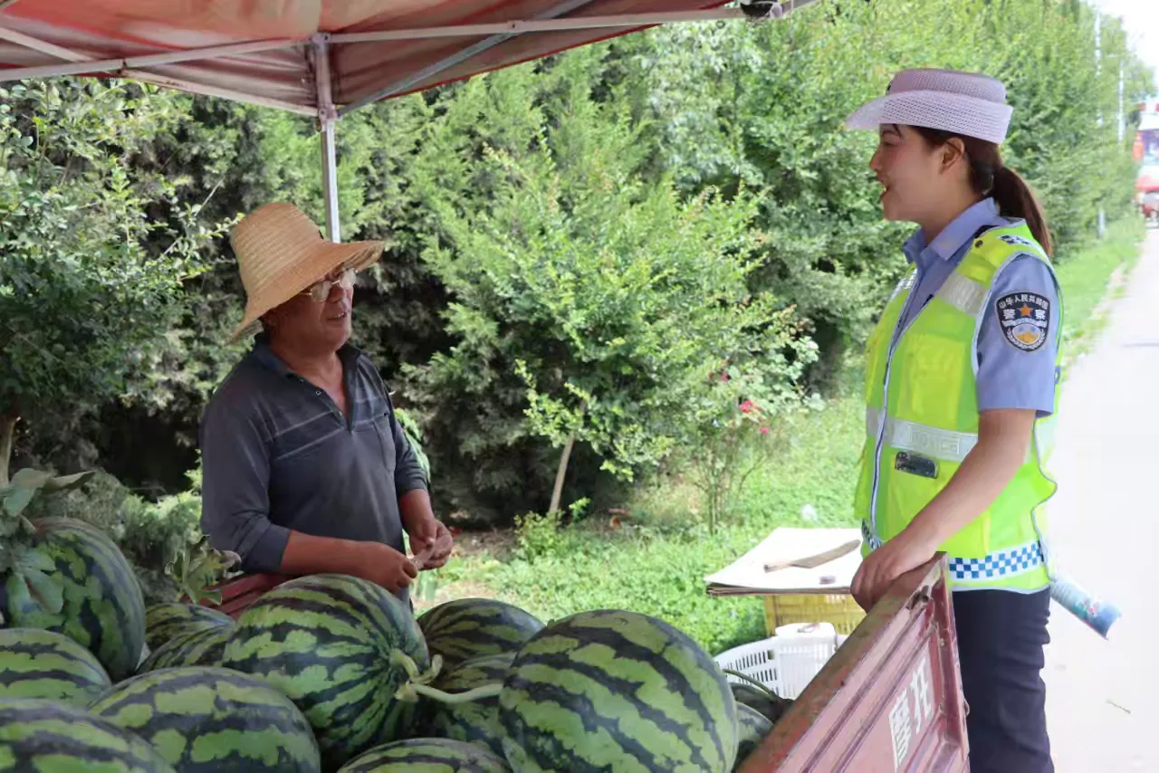 高交大隊民警走進村莊,渭濱大隊在省道219,陳倉、太白大隊分別走進轄區路邊瓜果蔬菜攤點及集散市場, 通過面對面講解、發放交通安全宣傳材料等方式,引導廣大交通參與者文明出行。麟游大隊針對“馬路市場”占道經營等交通違法行為開展整治行動。
